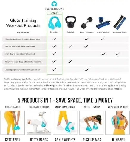 OUTPERFORMS THE COMPETITION: Unlike resistance bands that restrict your the Patented ToneBum offers a full range of motion to isolate and target key glute muscles for the best optimal results. Hand-held dumbbells are not made for your legs, and can end up falling off causing potential injuries, while the safety and security stays in place.